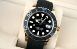 The Rolex Datejust is a symbol of luxury and precision. Renowned for its classic design, this timepiece stands out, especially with its stunning silver case and striking black dial. The contrast of materials showcases Rolex’s commitment to combining elegance with functionality.
